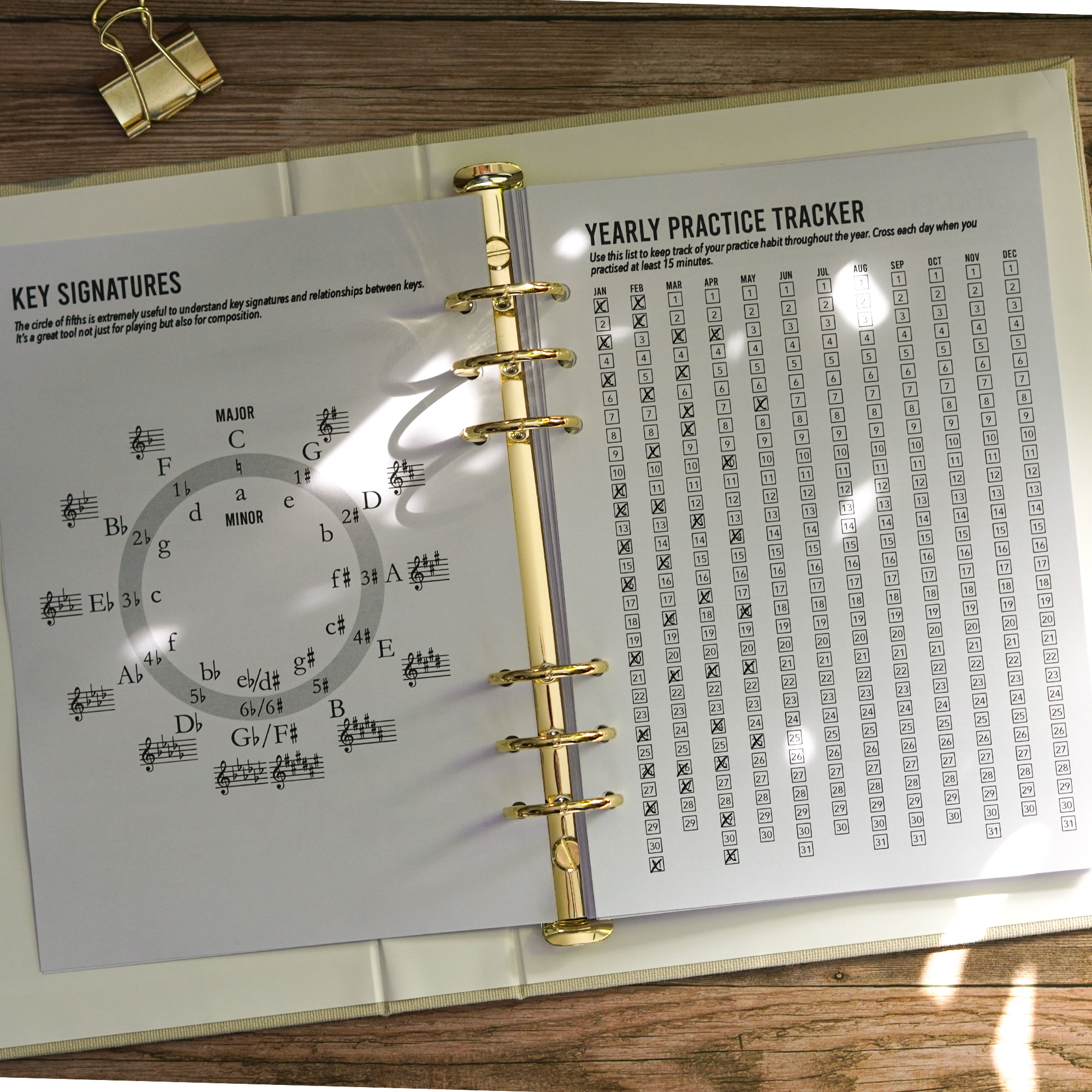 • Music theory and notation cheat sheet so you can find meanings quickly without googling (dynamics, tempo, articulation, key signatures, ornaments & more)